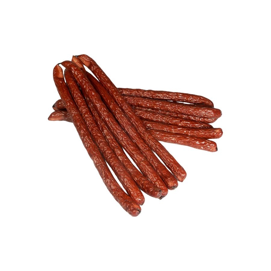 Schweinewurst, mittelgrob zerkleinert, gepökelt, geräuchert, gebrüht, getrocknet. Essbaren Hülle-Kollagen. Schweinefleisch, Speisesalz, Gewürze, Essig, Gewürzextrakte Fleischaromen, Geschmacksverstärker-Natriumglutamat, Hefeextrakt, Säureregulator: Natriumacetat, Glucono-delta-Lacton, Zitronensäure; Aromen, Antioxidationsmittel-Ascorbinsäure, Konservierungsstoff-Natriumnitrit.100 g Fertigprodukt wurden aus 118 g Fleisch. Das Produkt kann enthalten: GLUTEN, SOJA, SELLERIE, SENF,SCHWEFELDIOXID, einschließlich LAKTOSE MILCH. Nach dem öffnen im Kühlschrank aufbewahren.