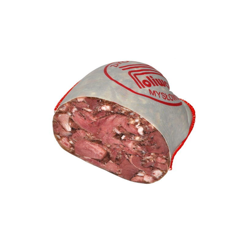 Trinkwasser, Schweineherzen 19%, Schweinebacken 14%,Schweinezungen 13%, Schweinefett 9%, Schweinegelatine,Schweinefleisch 5%, Schweinebindegewebe 4%, Gewürze (enthält SENF),Speisesalz, Zucker; Geschmacksverstärker: Natriumglutamat, Ribonukleotiden;Palmpflanzenfett, Aromen, modifizierte Stärke, Rindfleischextrakt,Hefeextrakt, Petersilie, Karotte, Antioxidans-Natriumascorbat,Säureregulator-Natriumdiacetat, Konservierungsstoff-Natriumnitrit.